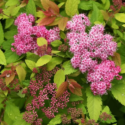 Virág: Júniusban és júliusban hozza mély rózsaszín virágait nagyméretű, hajtásvégi bogernyő virágzatban.