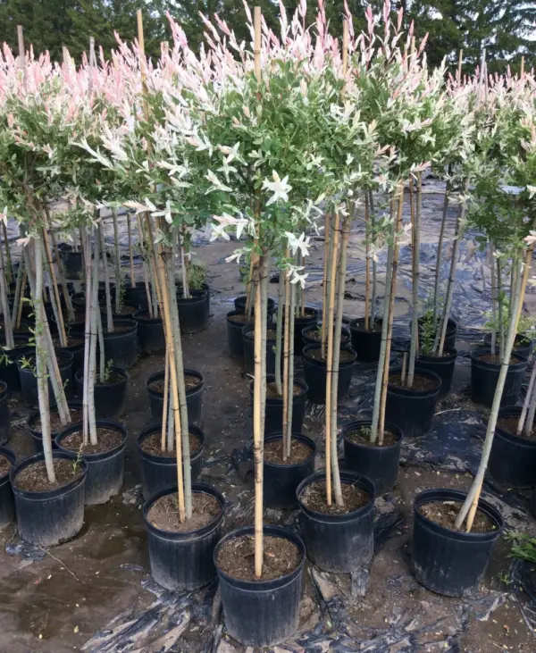 A Salix integra Hakuro Nishiki / Tarkalevelű Japán Fűz, 2-2,5 méter magasra növő, sűrű, vékony ágú, lombhullató cserje.