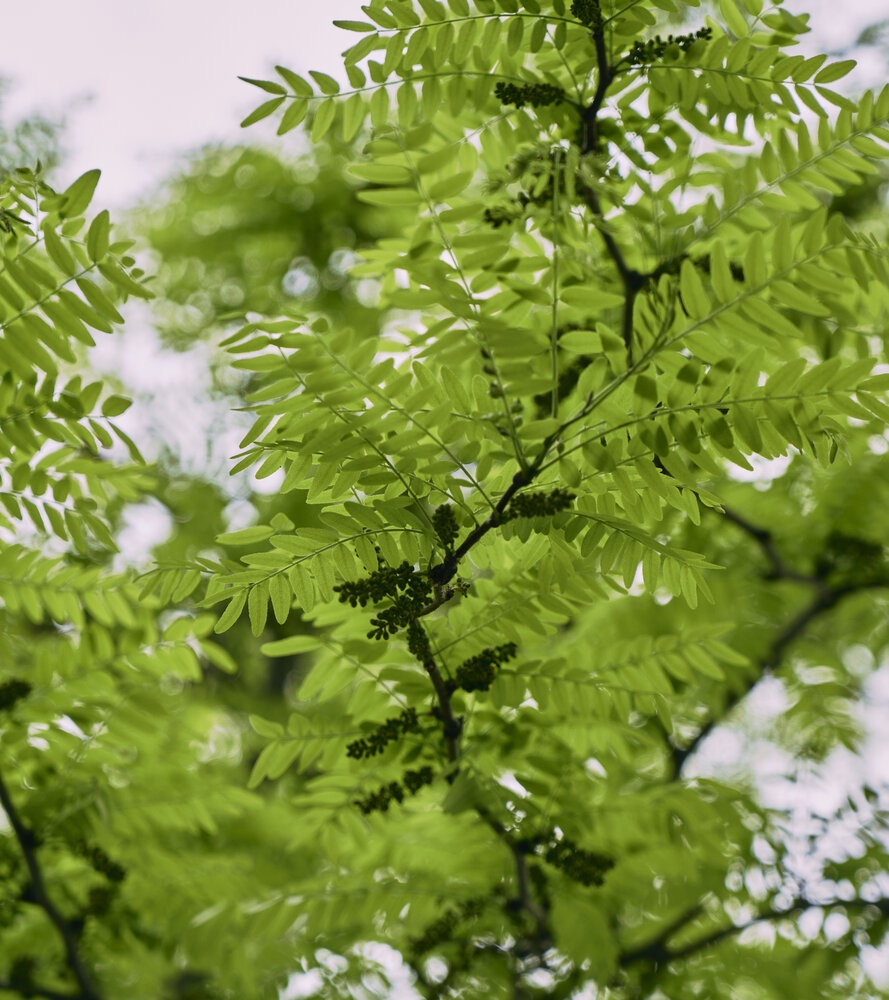 Habitus: 10-15 m magasra és 6-8 m szélesre növő, kúpos koronájú díszfa. A Gleditsia fajtákkal ellentétben kompakt és meglehetősen sűrű, piramis alakú lesz a korona idősebb korára. Alsó ágai lehajlók, tövistelen és termést nem hozó fajta. Levelei zöldek ősszel aranysárgára színesednek.
