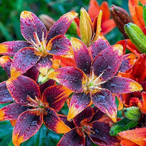 Az ázsiai hibrid liliomokat több Kelet- és Közép-Ázsiából származó faj keresztezésével állították elő. Virágformájuk, virágzási idejük, színük, sőt még termetük is nagy eltéréseket mutat fajtánként, azonban vannak közös tulajdonságaik is. Ilyen például a lándzsás, sötétzöld levélzet, melyen finom szőrözöttség is megfigyelhető. Virágforma típusból a turbán, trombita és kehely alakokat különítjük el.