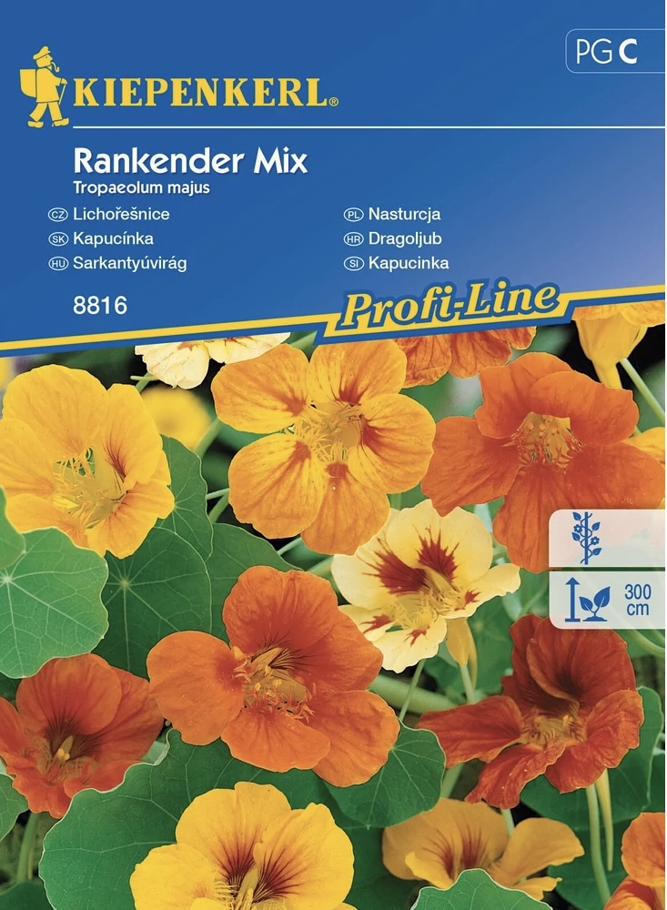 Gazdagon nyíló egynyári kúszónövény futtatórácsokra, balkonládába és ampolnába. Nagy virágok meleg árnyalatokban.
