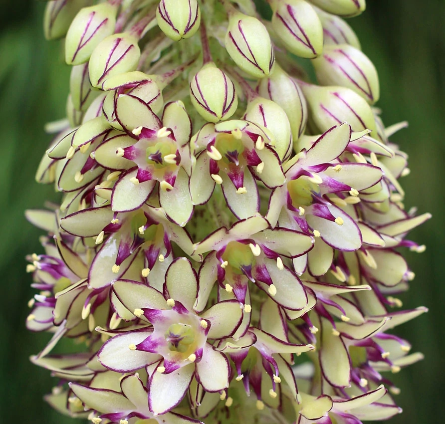 Virág: sűrű, csillag alakú virág, vaj-sötétlila színű, júliustól-augusztusig virágzik